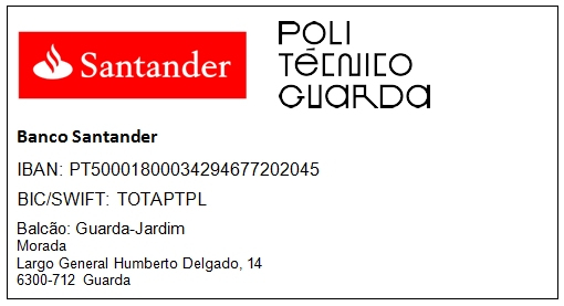 Enviar o comprovativo do pagamento para o e-mail tesouraria@ipg.pt com indicação de: - Txxxxx e nome do candidato - Nome do titular da conta bancária